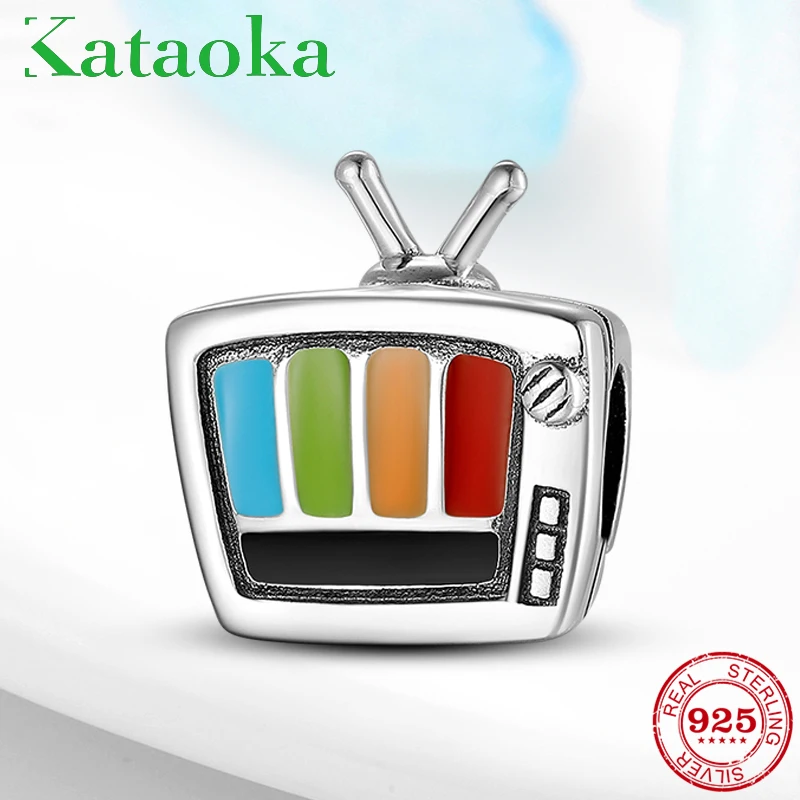 Ретро Мультяшные цветные телевизионные бусины 925 пробы серебряные амулеты подходят к оригиналу Пандора амулеты Серебро 925 браслет хорошее ювелирное изделие