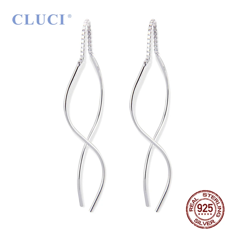 CLUCI, Настоящее серебро 925 пробы, серьги, ювелирные изделия для женщин, минимализм, треугольник, круглый квадрат, Длинная кисточка, Ушная линия, DE005SB