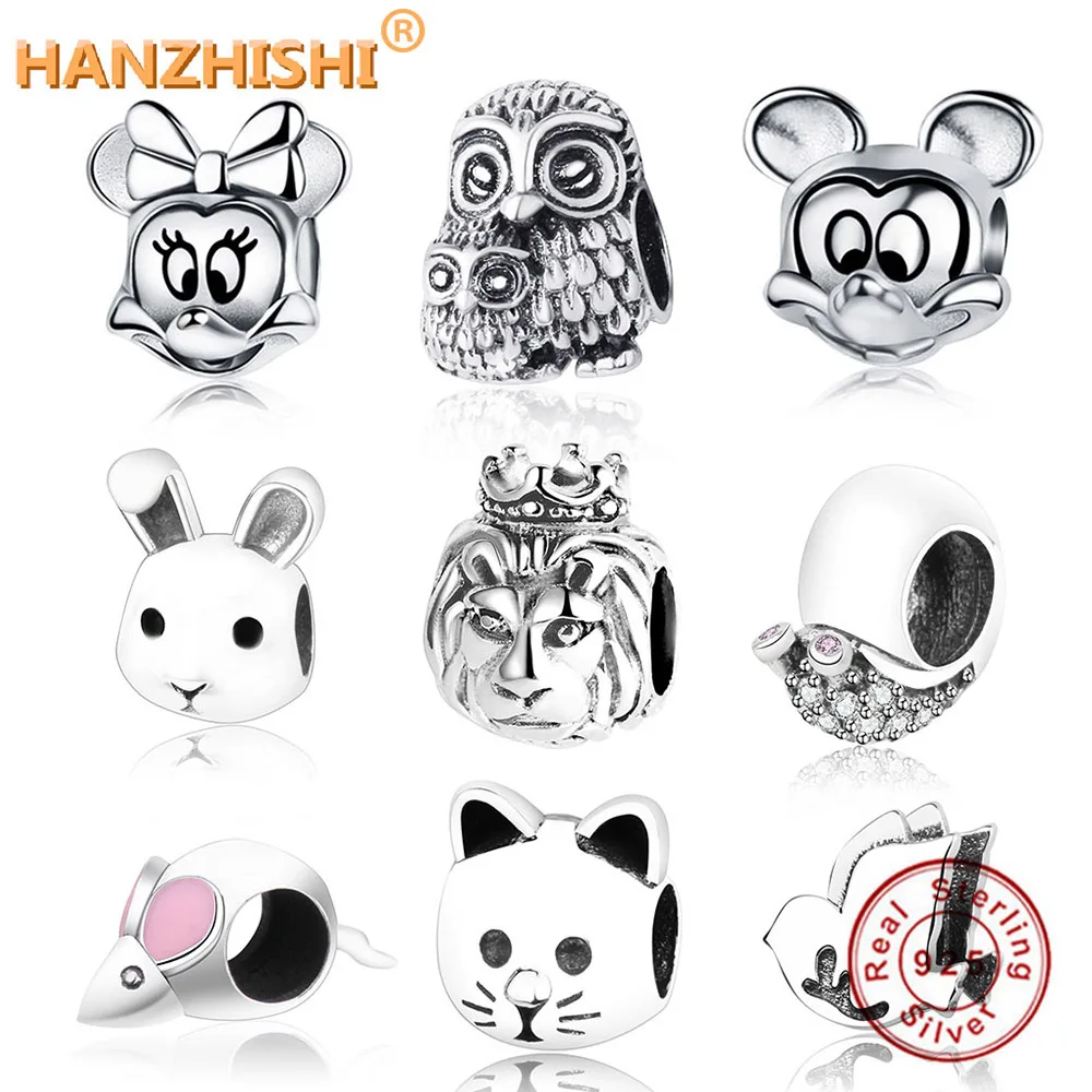 925 пробы, Серебряное милое животное, кошка, Лев, кролик, пчела, шарм, подходит для оригинального браслета Pandora, сделай сам, ювелирное изделие, berloque 2018