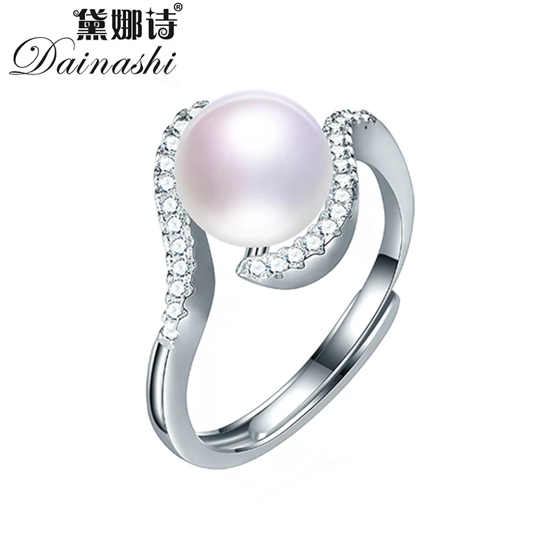 Dainashi 100% Кольцо с натуральным пресноводным культивированным жемчугом модное кольцо "S" 925 пробы с серебряным кристаллом и цирконием регулиру...