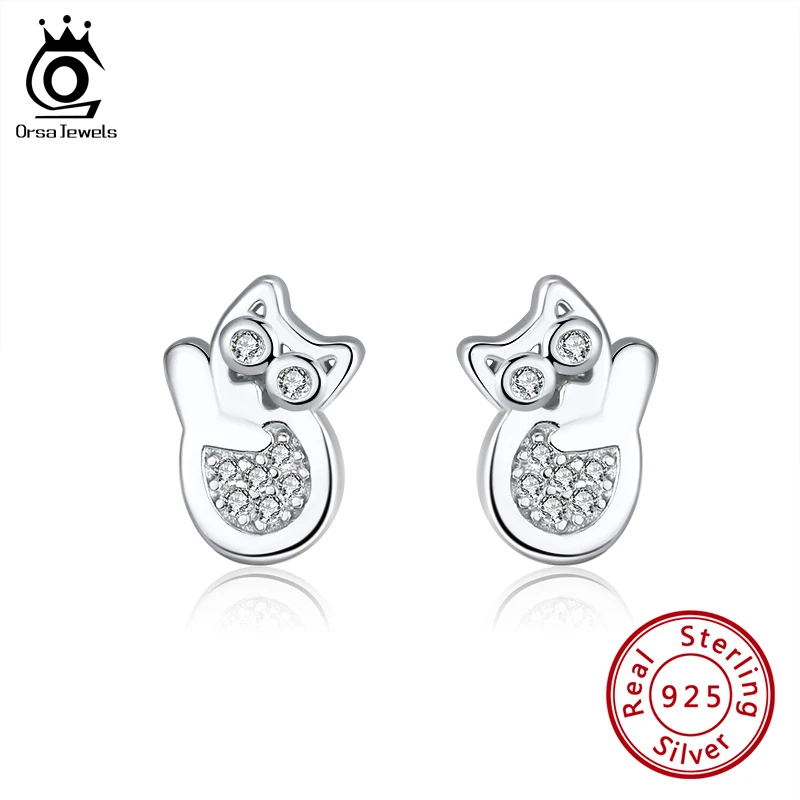 ORSA JEWELS милые серьги-гвоздики с котом, настоящее 925 пробы, серебряные большие женские серебряные серьги с кубическим цирконием АААА, новейшие ювелирные изделия SE260