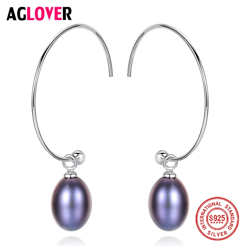 Женские серьги AGLOVER, большие серьги-капельки из серебра 925 пробы с натуральным пресноводного жемчуга, вечерние украшения в подарок