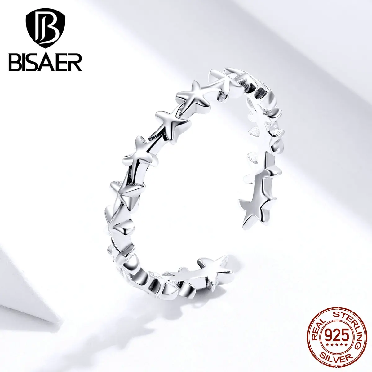 Морская звезда, ювелирное изделие, BISAER, 925 пробы, серебро, хит продаж, Штабелируемая звезда, морская звезда, открытый размер, кольца на палец д...