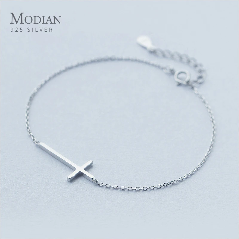 Modian, Настоящее 100% Стерлинговое Серебро 925 пробы, clasissc, простая цепочка с крестом, женский браслет, Стерлинговое Серебро, ювелирное изделие, подарок на день Святого Валентина