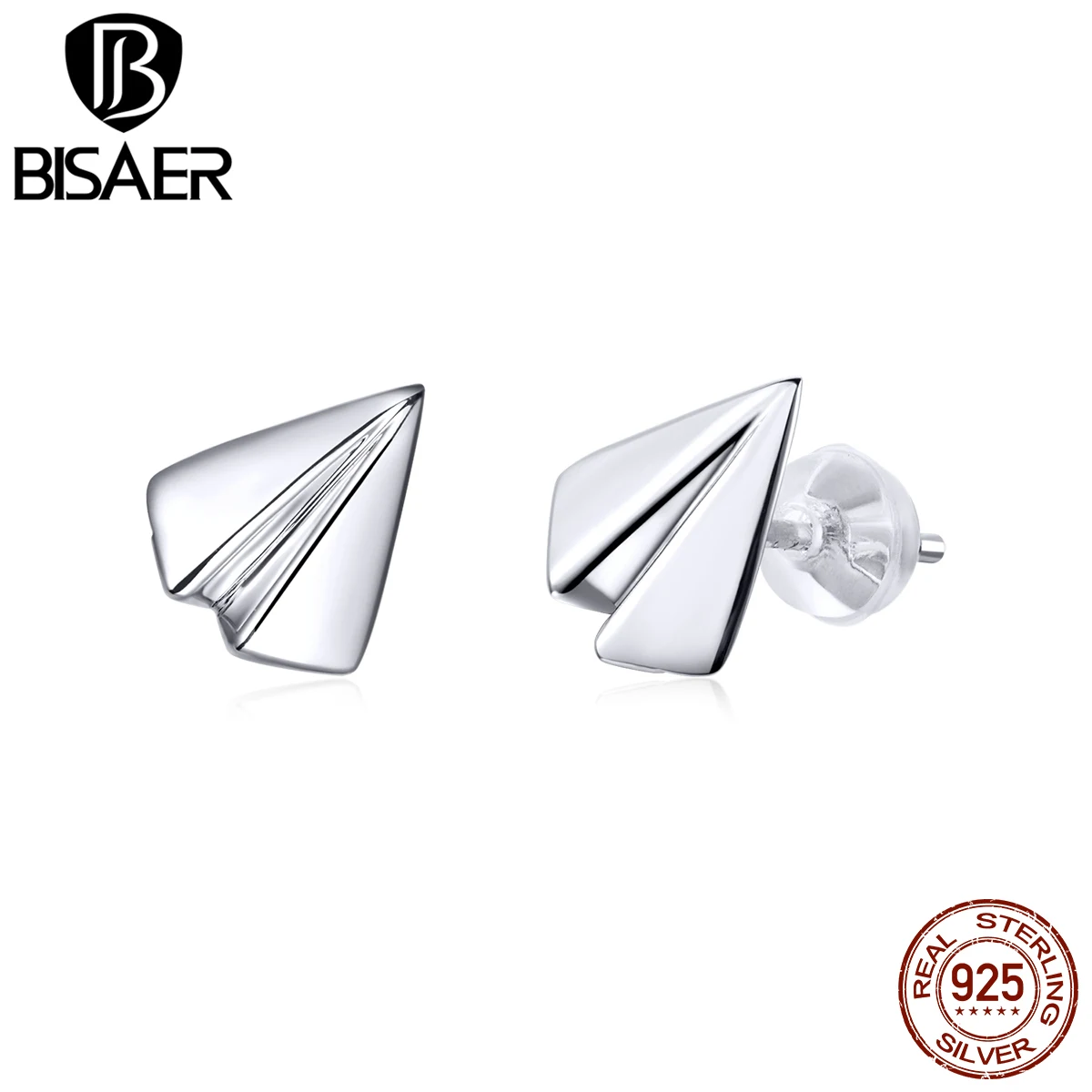 Бумажные серьги самолеты BISAER подлинный 925 пробы Серебряный бумажный самолет маленькие женские серьги-гвоздики ювелирные изделия из стерлингового серебра EFE335