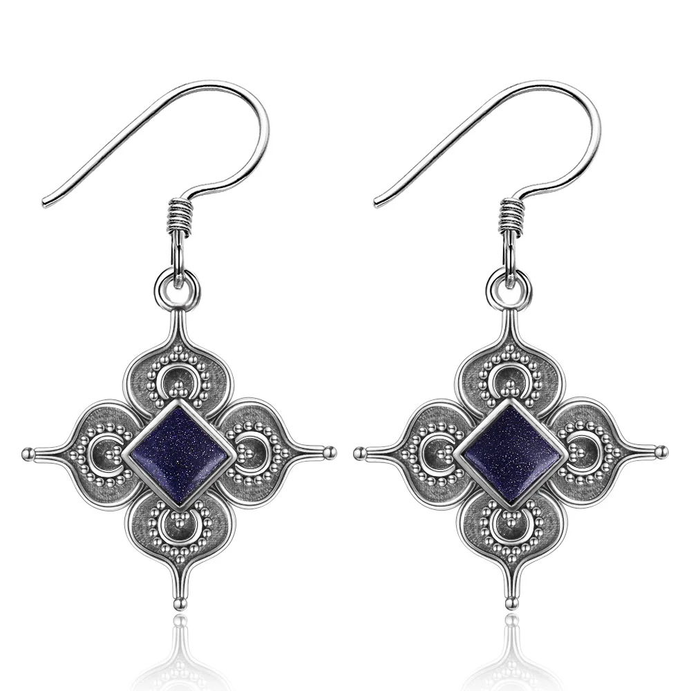 Женские серьги-капли с цветком из натурального белого и голубого песчаника, геометрические ювелирные изделия из стерлингового серебра 925 пробы, новый дизайн