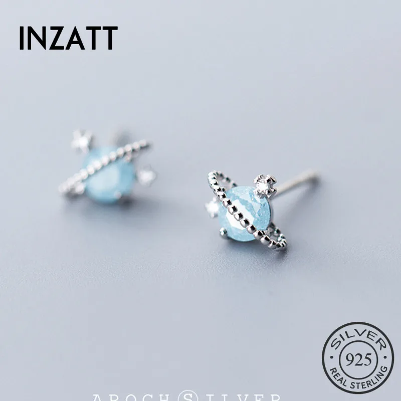 INZATT Настоящее серебро 925 пробы камень циркон серьги-гвоздики геометрической формы Модные женские ювелирные украшения для вечеринки милые аксессуары подарок