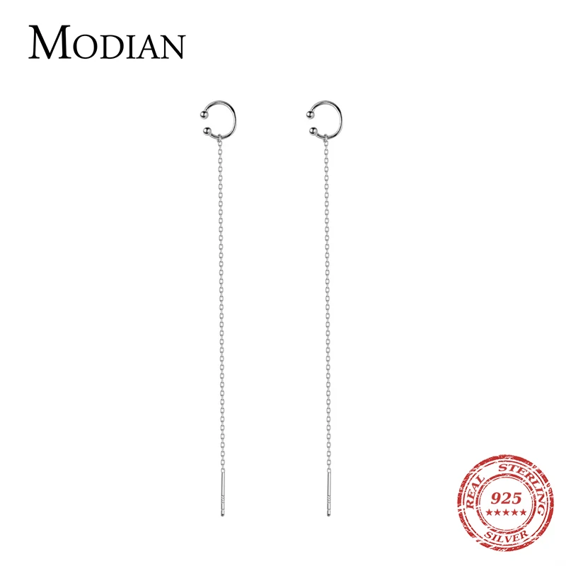 Женские серьги-подвески Modian, круглые серьги из стерлингового серебра 925 пробы с длинной цепочкой, ювелирные изделия из стерлингового серебра 925 пробы
