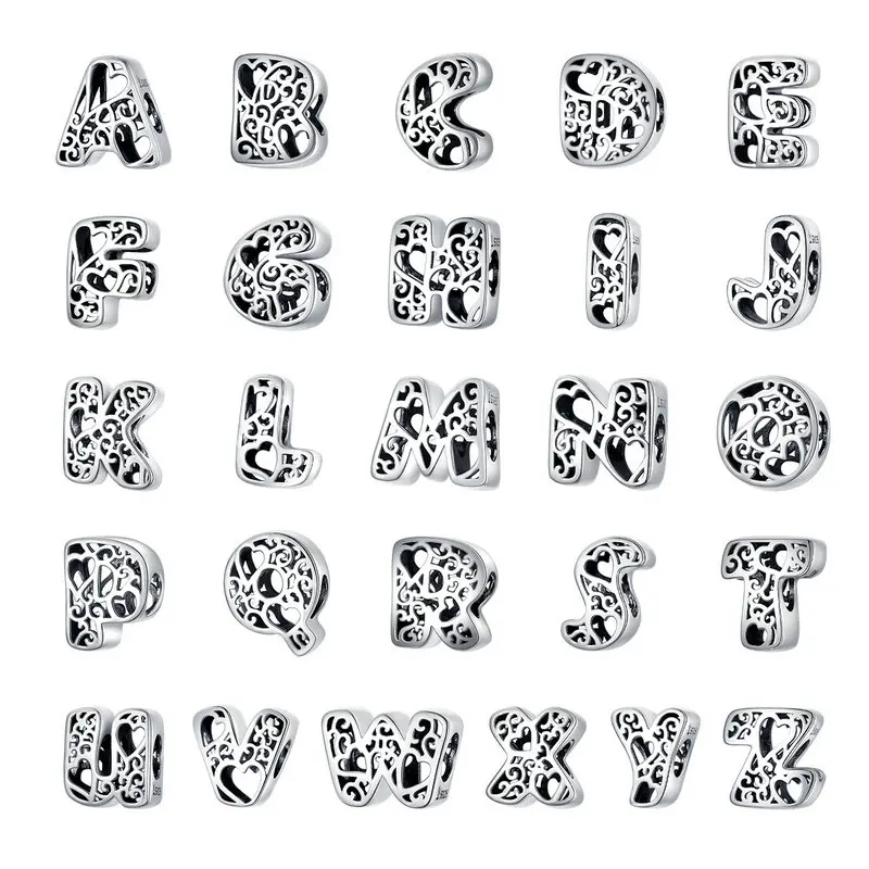 BISAER Новинка 925 пробы серебро выдалбливают буквы алфавита бусины номер бусины для самостоятельного изготовления ювелирных изделий Браслеты аксессуары