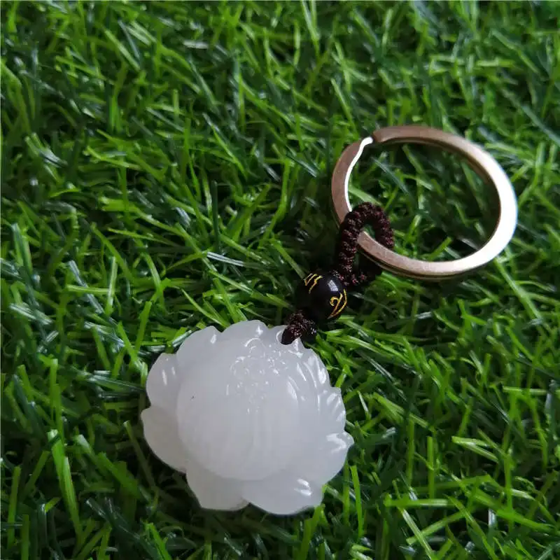 Красивая Подлинная ручная работа натуральный белый нефрит резная подвеска ввиде цветка лотоса брелок модный резной брелок для ключей ювел...