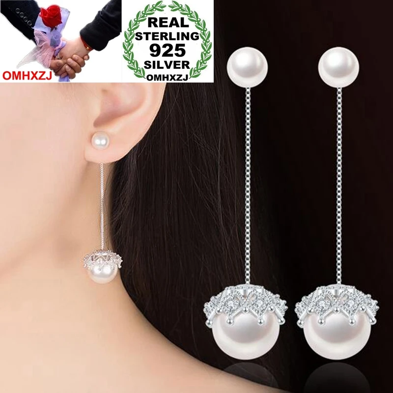 OMHXZJ оптовая продажа Последняя Мода Джокер женщина невесты подарок высокое качество кружева двойной Pearl 925 стерлингов серебряные серьги YS307