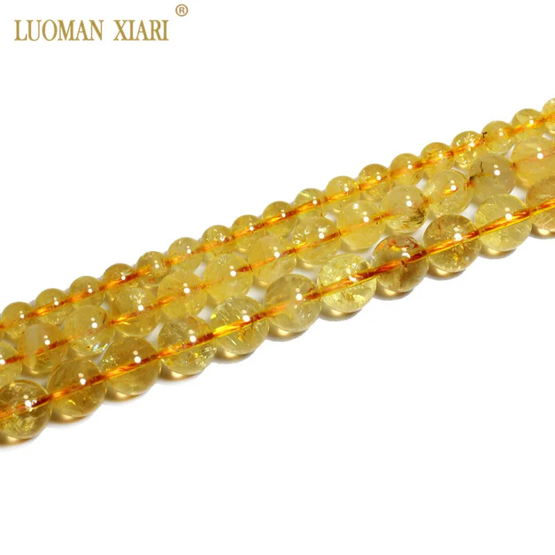 Изысканные AAA 100% натуральный круглый цитрин неоправленные полудрагоценные камни желтого цвета с украшением в виде кристаллов для самостоятельного изготовления ювелирных изделий браслет Цепочки и ожерелья 6/8/10 мм прядь 15''