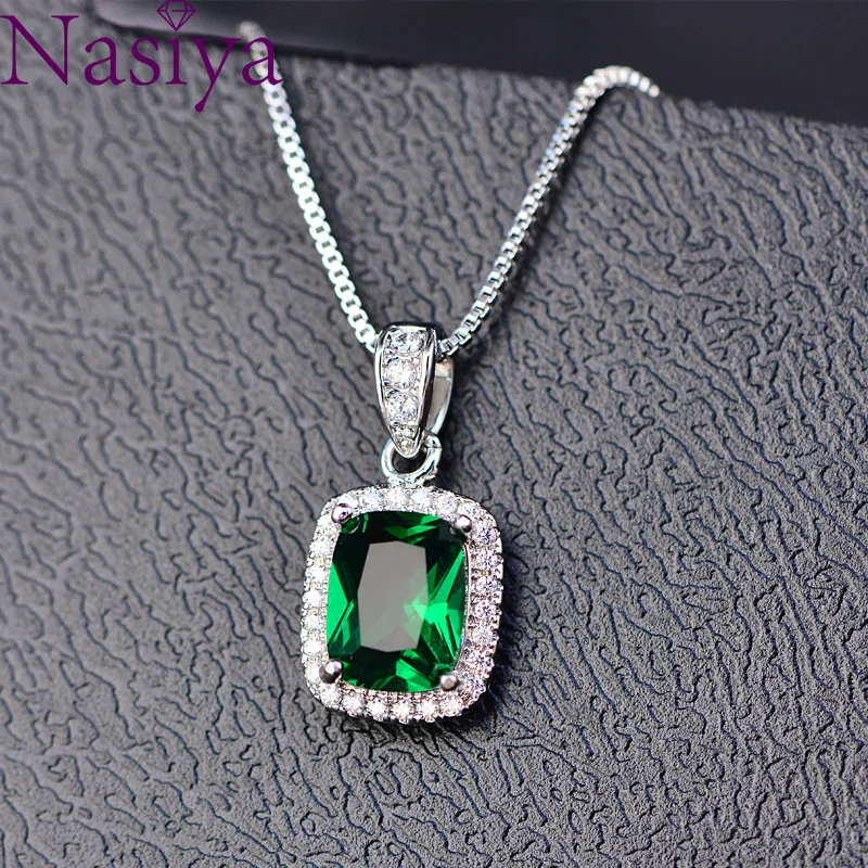 Квадратная ААА подвеска с цирконием ожерелье Изумрудный зеленый розовый Saphhire синий фиолетовый талисманы изящное подвесное ожерелье Jeweley