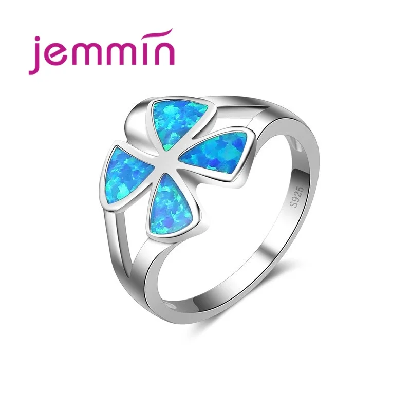 Jemmin 2019 уникальный дизайн Для женщин синий опал кольца для свадьбы Fine Jewelry 925 пробы серебро для предложения руки и сердца кольцо для леди