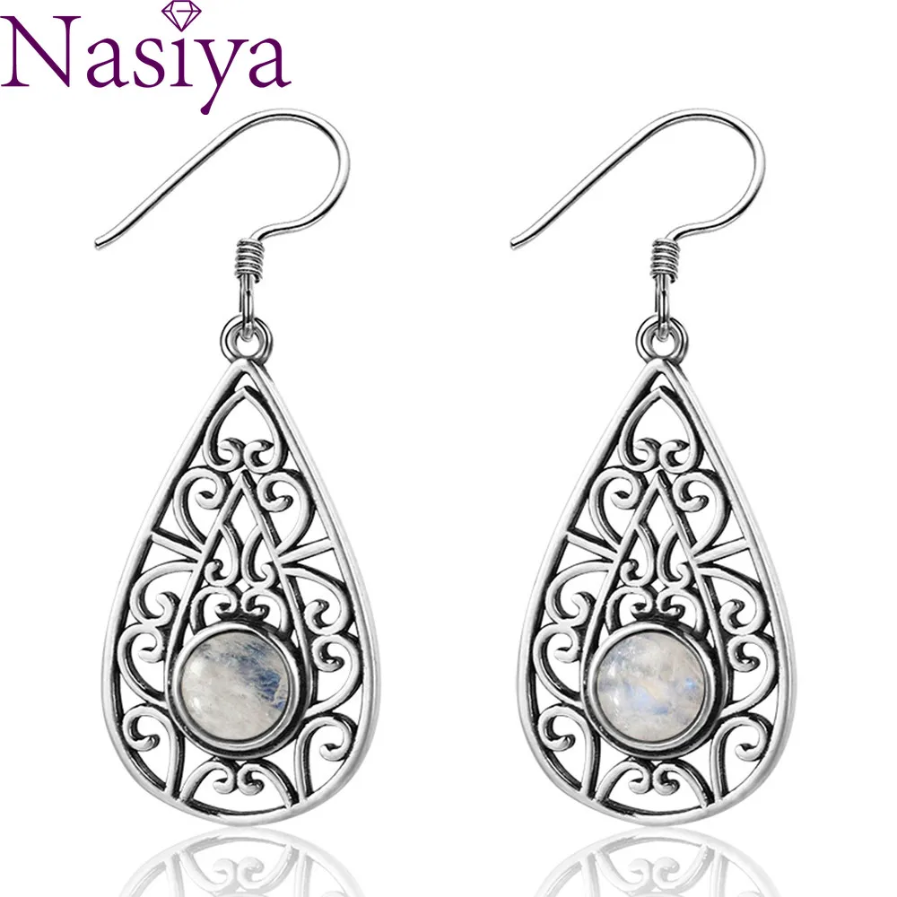 925 пробы, серебряные серьги, 6 мм, круглый лунный камень, Ретро стиль, персидская текстура, стильные подвески, серьги, опт, для помолвки, вечерн...