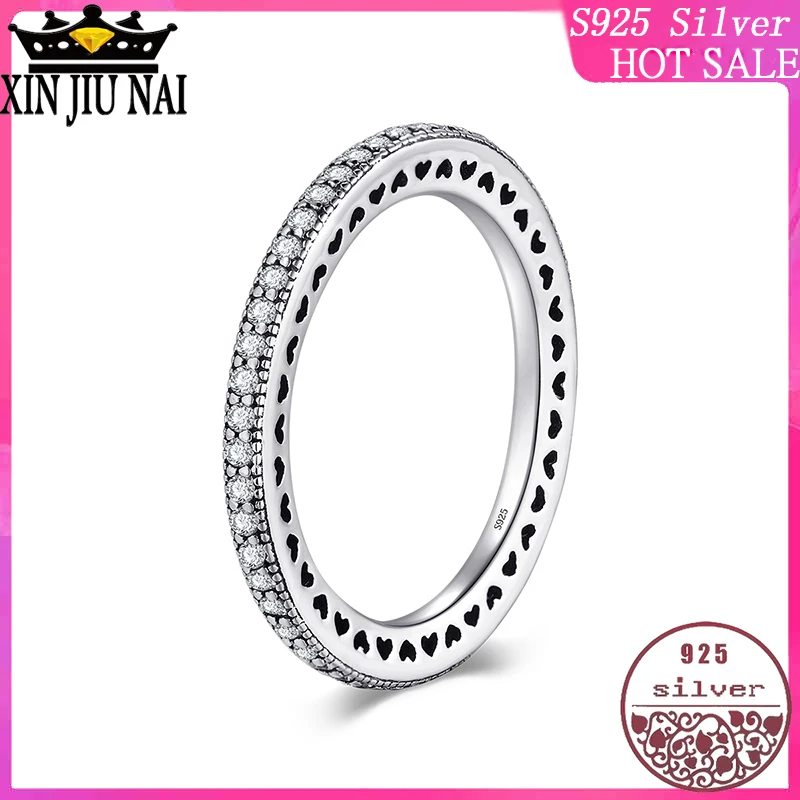 Кольцо из 100% стерлингового серебра 925 пробы для девушек, черное тайское серебро, модное совместное женское сердце, романтическое кольцо с бриллиантом для женщин, мужское кольцо 925 пробы
