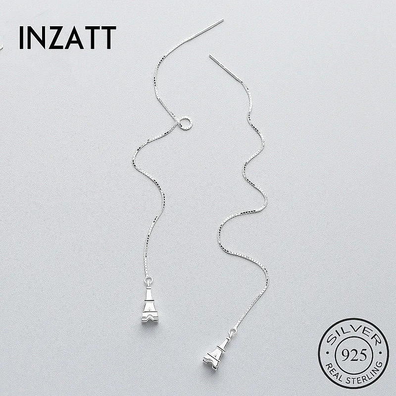 INZATT Романтический башня личность мотаться падение серьги 925 пробы серебро ювелирных украшений длинная цепь кисточкой для Для женщин свадеб...