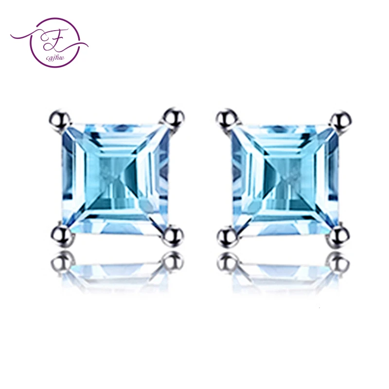 925 пробы серебро квадратный вырез Природный Голубой топаз Красота стержня Для Женщин Серьги Fine Jewelry FCGJHW