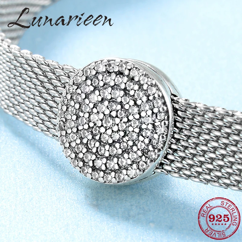 925 стерлингового серебра круглые Роскошные Хрустальные Очаровательные CZ бусы-клипсы Fit reflects браслет оригинальные очаровательные клипсы же...