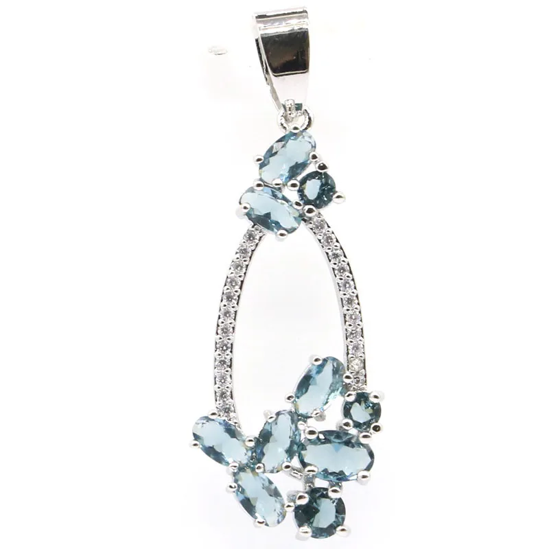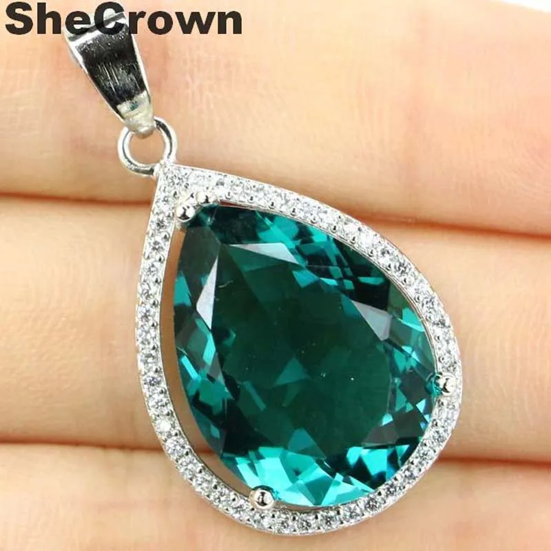 41x15 мм Роскошный кулон SheCrown создан Лондонский голубой топаз Белый CZ подарок для дам Европейский стиль серебряный кулон