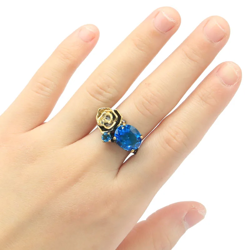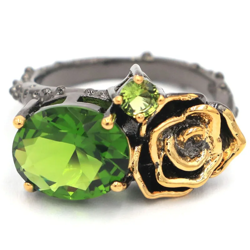 8,0 # Sublime Античная капля зеленый цаворит Гранат подарок ко Дню Святого Валентина Черное золото Серебряное кольцо 24x16 мм
