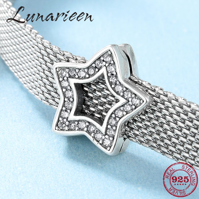 Аутентичные стерлингового серебра 925 ажурные в форме звезды прозрачные бусины из циркона для изготовления ювелирных изделий подходят Ориг...