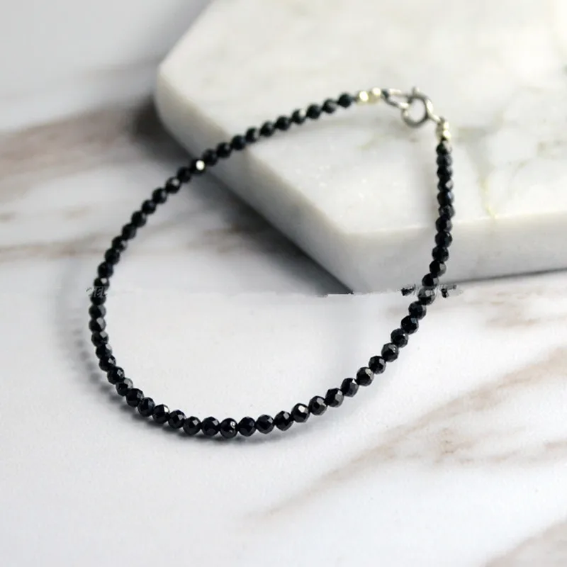 Черная шпинель круглая огранка 2 мм/3 мм/4 мм/5 мм браслет 7,5 дюймов оптовая продажа бусины натуральные fppj драгоценный камень
