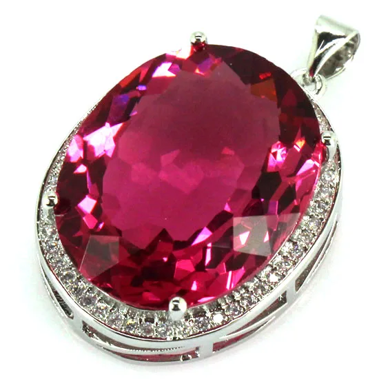 Большой Самоцветы 22x18 мм розовый турмалин, Белый CZ SheCrown дамы обручение серебряный кулон 25x20