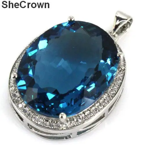 SheCrown большой цветной камень 22x18 мм Лондонский голубой топаз Белый CZ 925 Серебряный кулон 25x20 мм