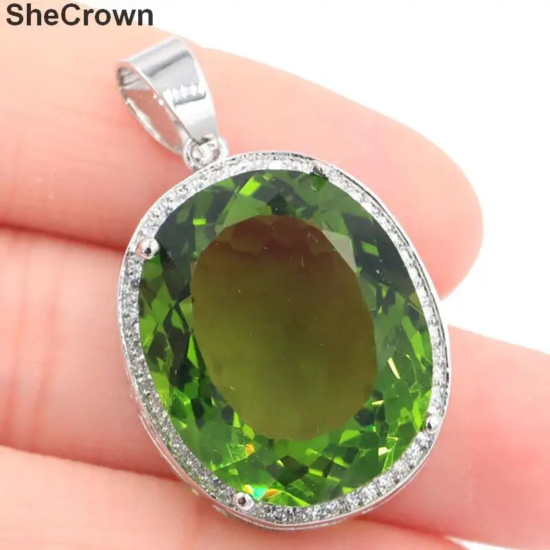 Фантастический Овальный драгоценный камень изменение цвета шпинель CZ дамы свадебные серебряные кулон 30x18 мм