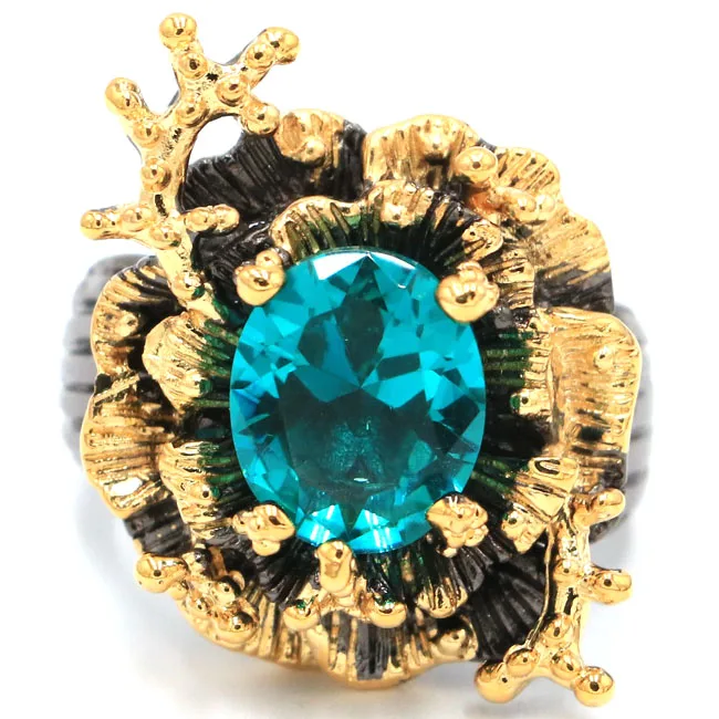 Большое Ювелирное Украшение 22x18 мм Овальный Париж Голубой Топаз Белый CZ Женская 925 Серебряный кулон 25x20