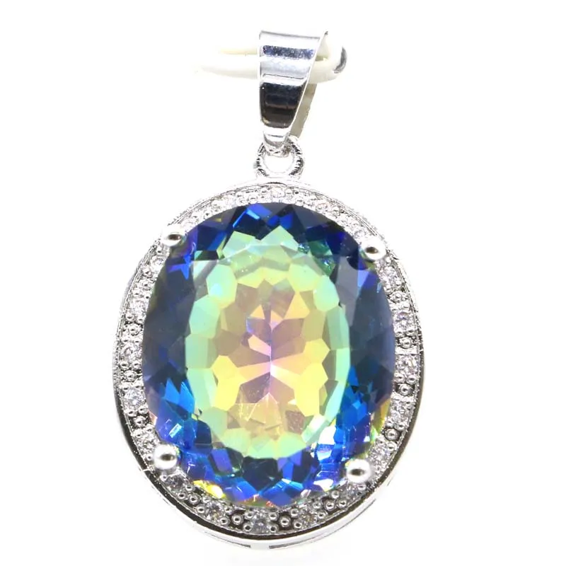 32x19 мм Классический овальный 18x15 мм Creatd огонь Радуга Мистик Топаз натуральный CZ подарок для матери серебряный кулон
