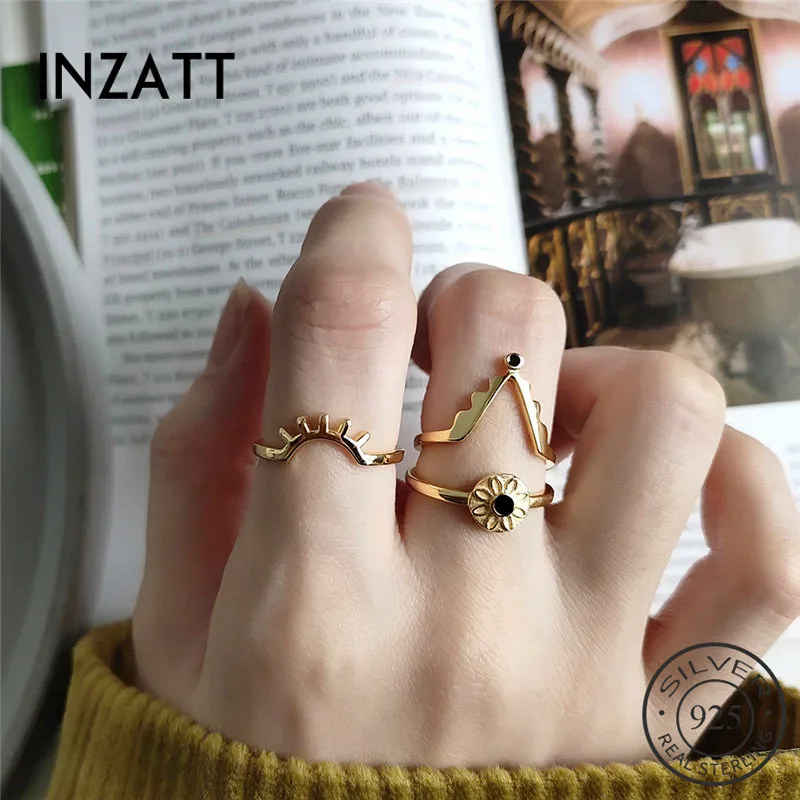 INZATT Настоящее серебро 925 проба геометрическое кольцо для модных женщин вечерние ювелирные изделия в стиле панк минималистичные аксессуары ...