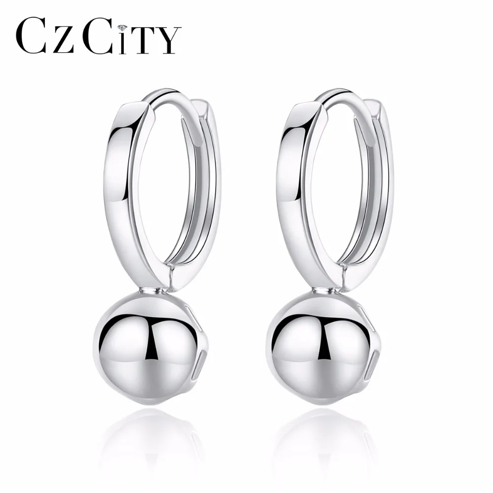CZCITY круглый 925 серебряные серьги-кольца с шариком Настоящее серебро 925 проба Винтаж шар серьги для Для женщин модный подарок для ювелирных и...