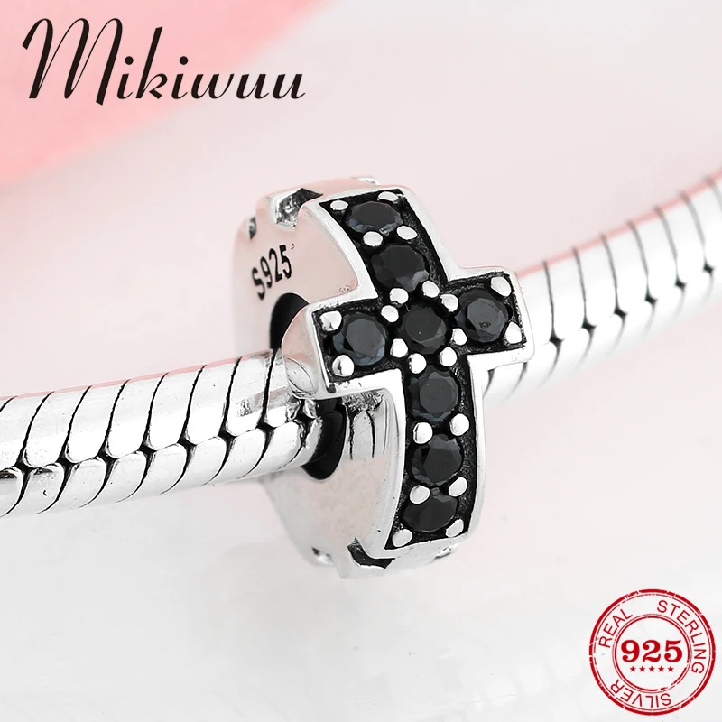 Новая мода 925 пробы серебристый, черный циркон крест формы ограничитель бисера Ювелирных изделий приспосабливать оригинальный браслет под...