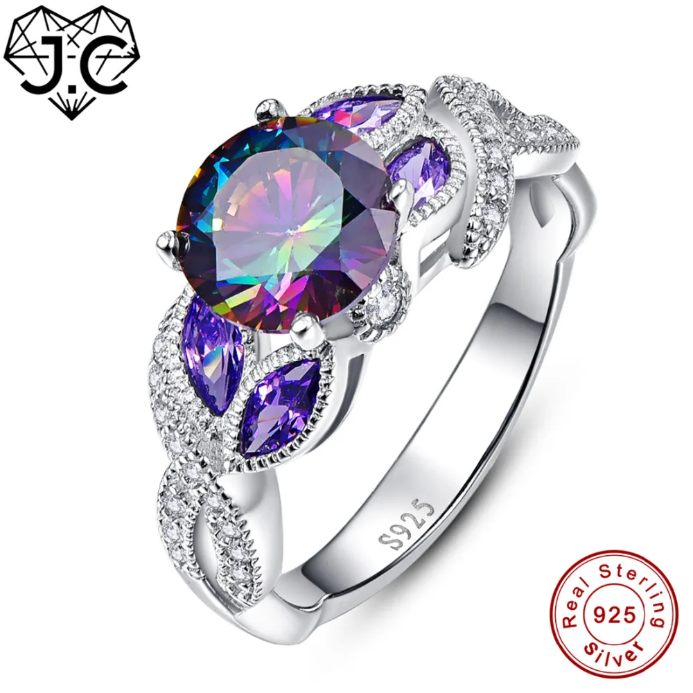 J. c женский великолепные ювелирные украшения классический радуга и аметист розовый белый топаз Твердые 925 пробы Серебряное кольцо размеры 6 ...