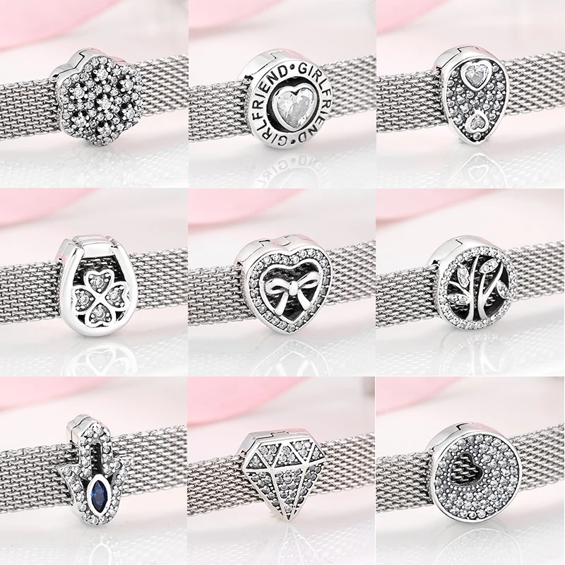 Новые 925 пробы серебряные сердца и круглой формы сверкающие CZ бусы-клипсы подходят для оригинальных отражений Шарм браслет ювелирных изделий