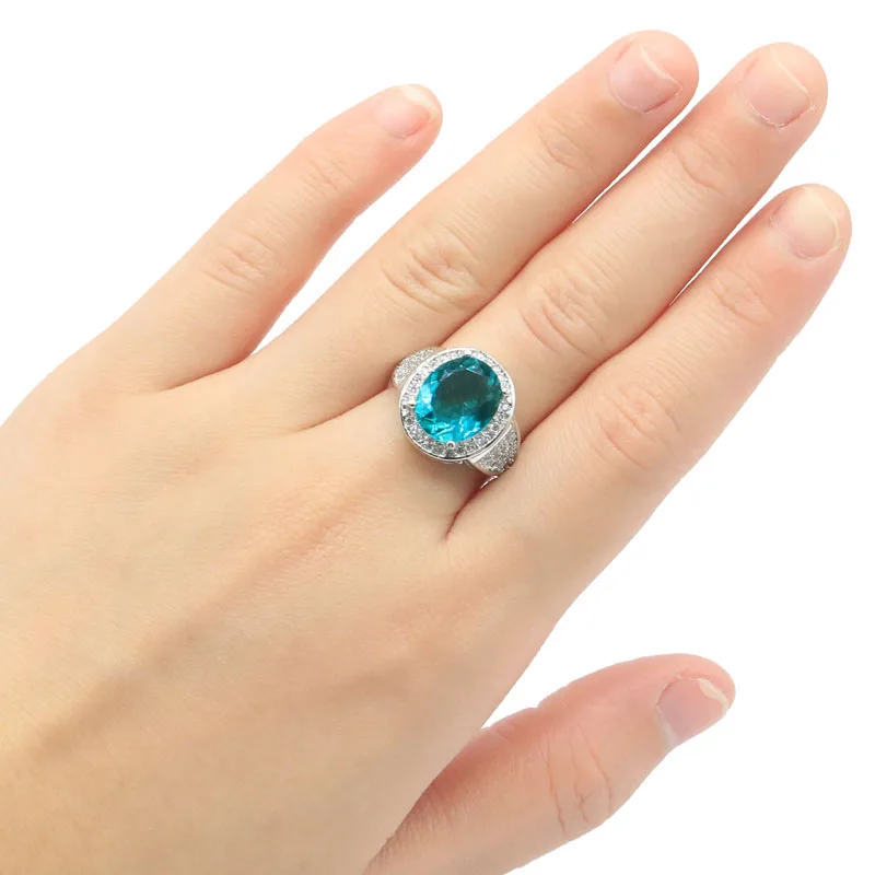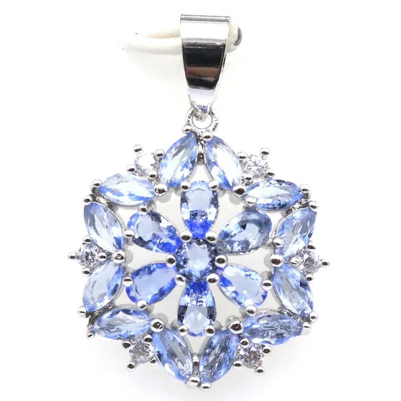 Классический Париж Голубой топаз Белый CZ женские подарок серебряный кулон 30x19 мм