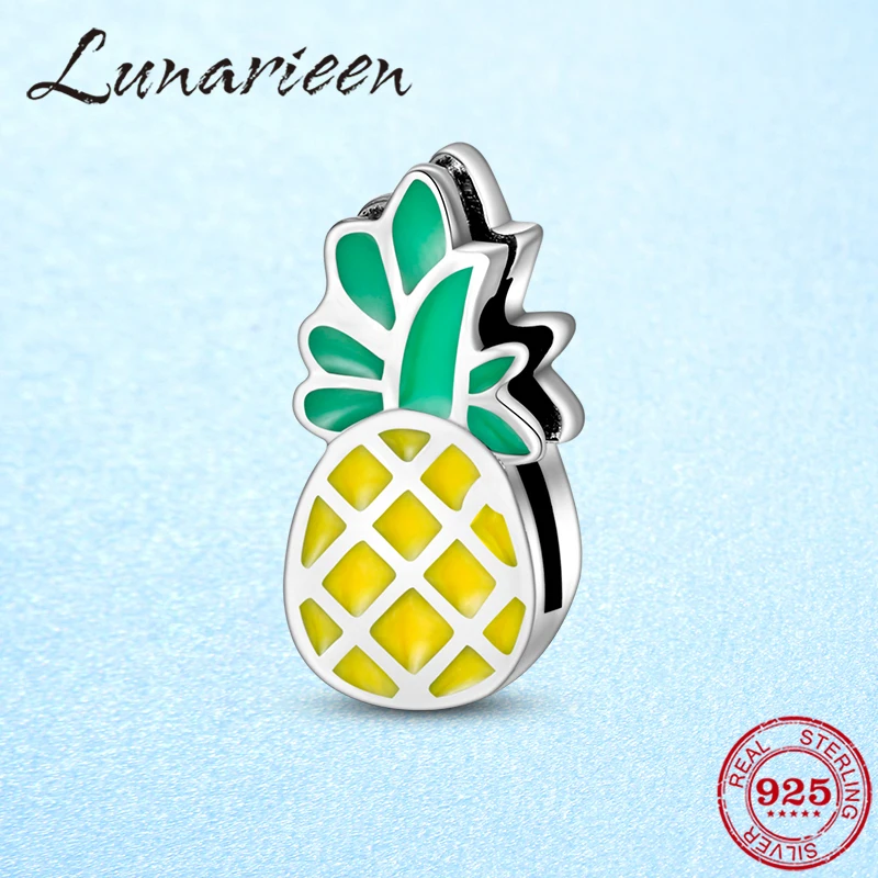 Горячая 925 пробы Серебряные Желтые ананасы круглые скрепки бусины для изготовления ювелирных изделий подходят Оригинальное отражение клип...