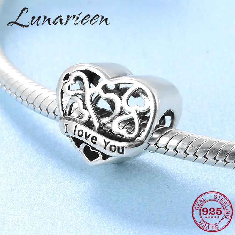 Новый Вырез в форме сердца 925 стерлингового серебра Мода I LOVE YOU тонкие Бусины Подходят оригинальный Pandora браслет ювелирных изделий