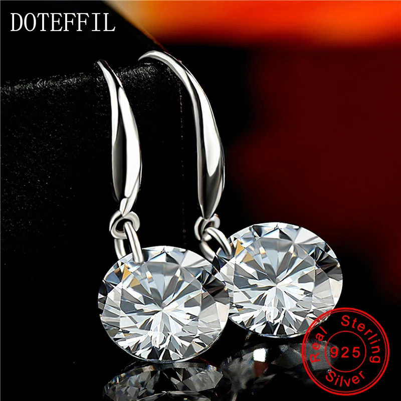 2020 Новое поступление, настоящее 925 Серебряное ювелирное изделие, висячие серьги, круглые циркониевые фианиты, модные ювелирные изделия, Кристальные шпильки для женщин и мужчин