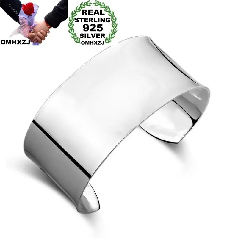 OMHXZJ Оптовая Личность Мода OL женщина девушка подарок серебряный простой пустой широкий 925 пробы Серебряный Браслет манжета BR142