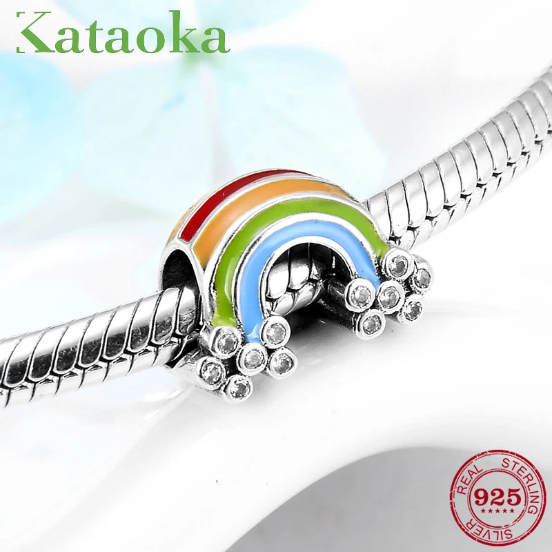 Новинка, Стерлинговое Серебро 925 пробы, красочный Солнечный Прекрасный Радужный Браслет с бусинами, оригинальный браслет Pandora, кулон, ювелирное изделие