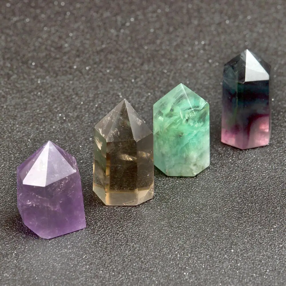 1,5 дюйма Природный аметист точка флюорита скипетров палочка Исцеление чакры Кристалл Камень «reiki» резные ремесла Декор с бесплатным Чехол