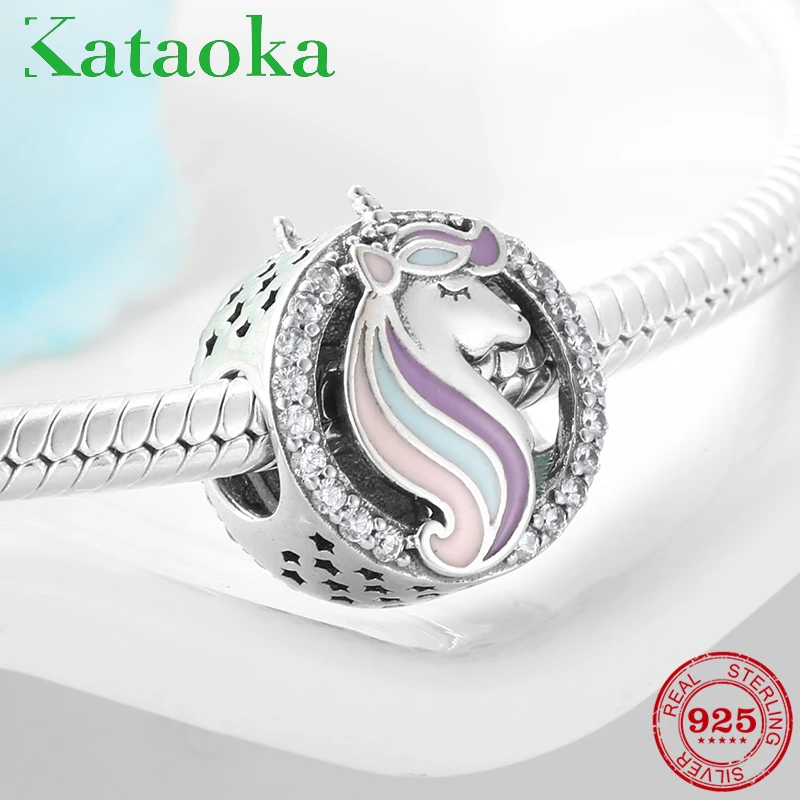 Мифическая удача Единорог 925 пробы Серебряные Красочные эмалированные бусины подходят к оригинальным Пандоре Амулеты Бусы браслет Изготовление ювелирных изделий