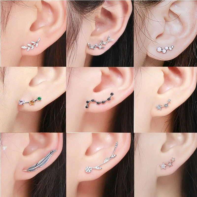 Малый 8 мм 1 пара 100% реального. 925 пробы серебро полукруг Лаки Бар Ухо серьги GTLE1417