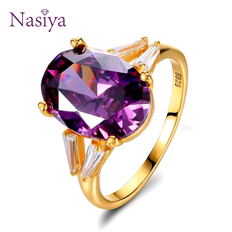 Кольца из стерлингового серебра 925 пробы для женщин, большие кольца с овальным аметистом, фиолетовые Свадебные кольца, ювелирные украшения, подарок на день Святого Валентина