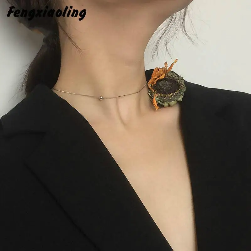 Gemei Новое поступление 925 пробы Серебряное ожерелье вокруг шеи для Для женщин с простые круглые бусинки Бесплатная доставка Для женщин подарок