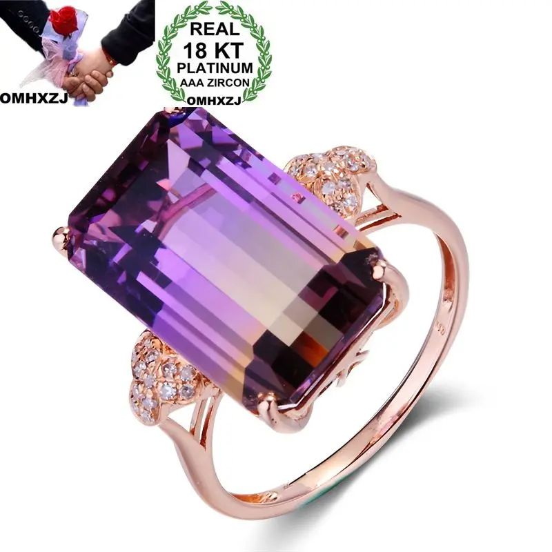 OMHXZJ Оптовая Продажа Европейская мода женщина человек праздничный свадебный подарок прямоугольник фиолетовый Турмалин Циркон 18KT розовое золото кольцо RR510