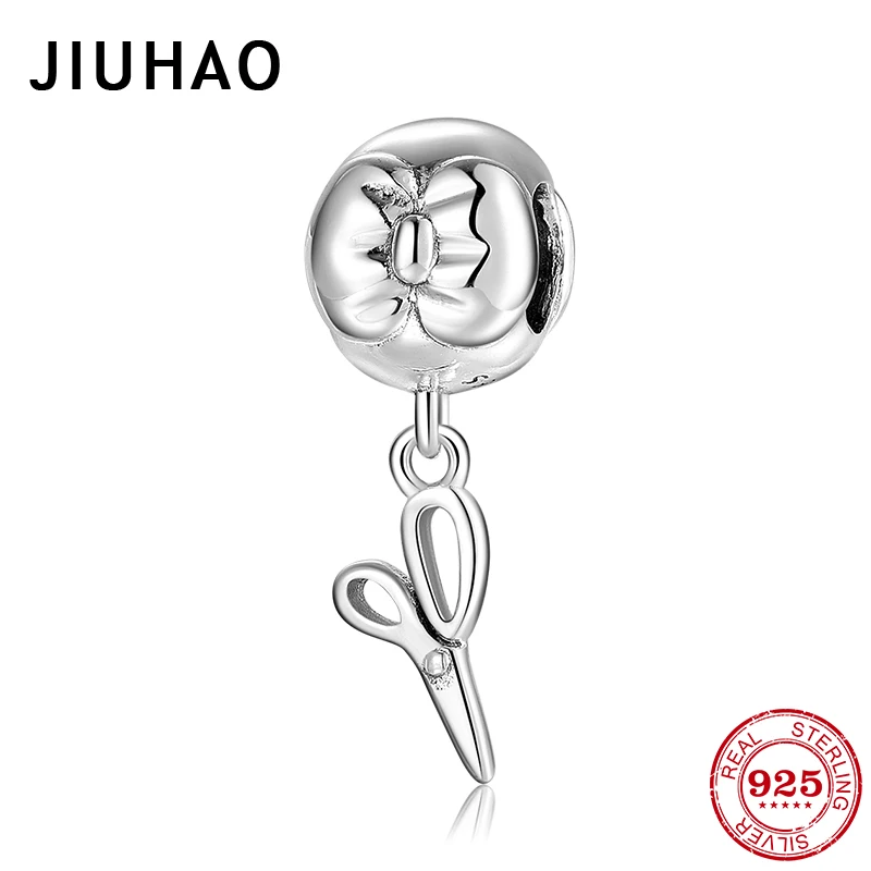Изысканный Лук Кнопка с Висячие 925 пробы серебряные ножницы с бусинами подходят оригинальный Pandora браслет ювелирных изделий